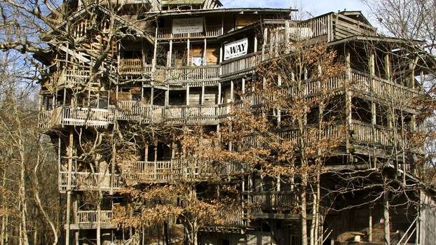 Golema drvena kuća stoji na šest stabala i ima 10 katova. Horace Burgess kaže kako mu je Bog rekao da mu izgradi kuću na drvu i da će mu on osigurati materijal