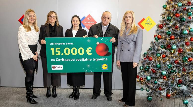 U sklopu međunarodne božićne kampanje, Lidl Hrvatska je uručio blagdanske donacije Caritasovim socijalnim trgovinama i bankama hrane diljem Hrvatske. Donacije vrijedne ukupno 45.000 eura potvrđuju Lidlovu kontinuiranu predanost borbi protiv siromaštva, smanjenju bacanja hrane te podršci najranjivijim skupinama u društvu.