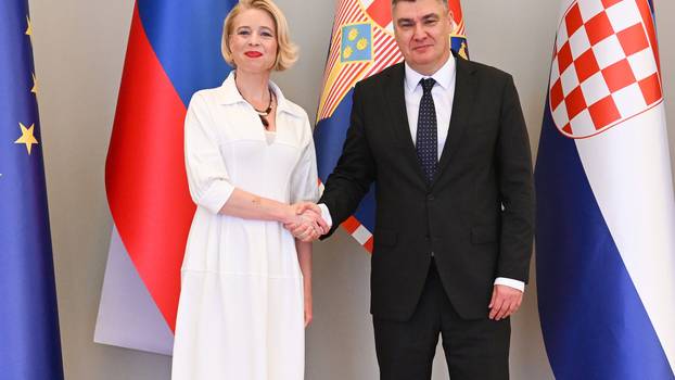 Urška Klakočar Zupančič u službenom je posjetu Hrvatskoj pa je sastanak na Pantovčaku bio "prilika da još jednom sa zadovoljstvom potvrdimo sada već višegodišnji kontinuitet odličnih odnosa naših dviju država", kaže se u priopćenju.