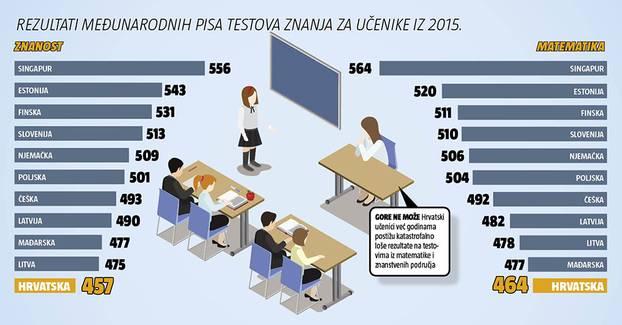 Rezultati PISA testova znanja učenika također stavljaju Hrvatsku na začelje ljestvice, što zorno pokazuju da obrazovni sustav ne priprema mlade dovoljno za život.