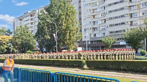 "Ima jedna", čuje se glasni uzvik. "Udarna", odgovaraju deseci vojnika u crvenim beretkama. Radi se o pripadnicima 4. gardijske brigade 'Pauci', a koji su netom prije početka mimohoda izveli svoj prepoznatljivi uzvik.