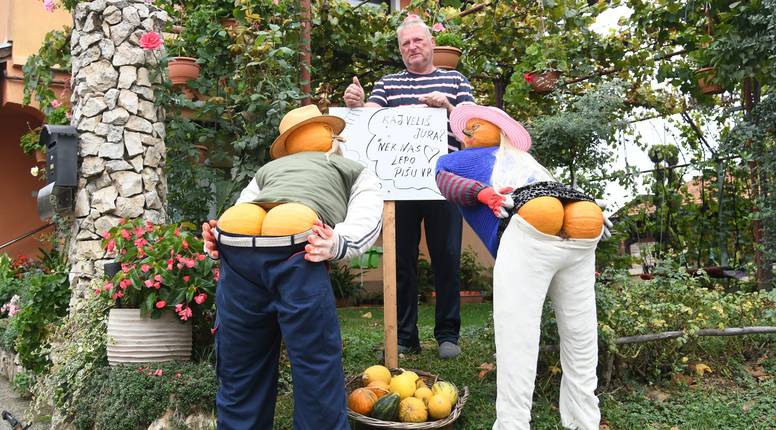 Jože Hemetek (65) iz Draganovca kod Koprivnice iskoristio je kumove tikve za šaljivu jesensku instalaciju. Jura i Bara svima izmame osmijeh