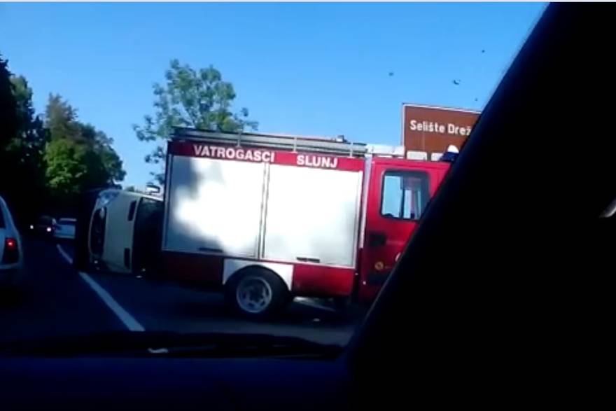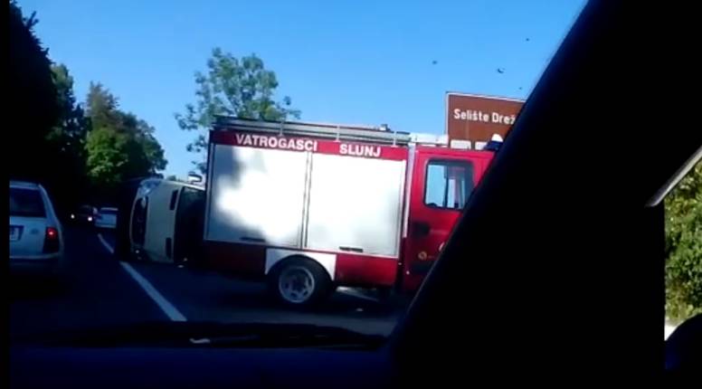 Čitatelj javlja da je zbog sudara nastala kolona, te da su u nesreći sudjelovali kombi vozilo koje se prevrnulo na kolnik i terenac.