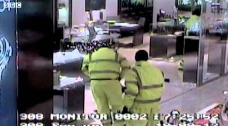 Dobro uigran razbojnički trio upao je u srijedu navečer u trgovinu satova i nakita u Manchesteru. S fantomkama na glavi i kričavim radnim kombinezonima opelješili su dućan u samo 80 sekundi i to pred nekoliko šokiranih kupaca. Ukrali su 100 dizajnerskih satova, ukupno vrijednih oko 5 milijuna kuna. Vitrine, u kojima su bili vrijedni satovi, je jedan od pljačkaša razbijao sjekirom.