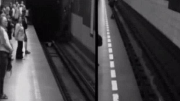 Trenutak prije nego što je žena, koja je očito bila pijana ili stravično umorna, pala na prugu, muškarac ju je pokušao uloviti, ali nije uspio. Samo nekoliko sekundi kasnije vlak je prešao preko nje.
