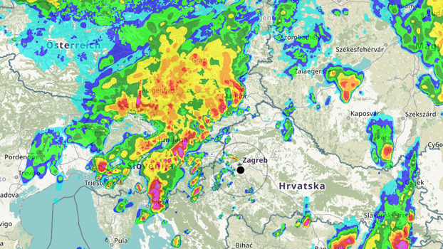 Zagreb se jutros probudio uz kišu, a nova runda nevremena s kišom stiže oko podneva, vidljivo je na Rain Alarmu koji prati oblake i upozorava na padaline