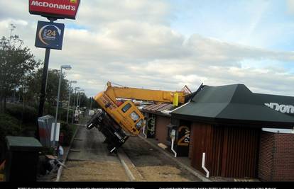 Uplašeni gosti panično su bježali iz restorana u Durhamu. Imali su nevjerojatnu sreću da nitko nije ozlijeđen. Nakon što se dizalica golemog radnog vozila srušila na krov Mcdonald'sova drive-in restorana u Velikoj Britaniji.