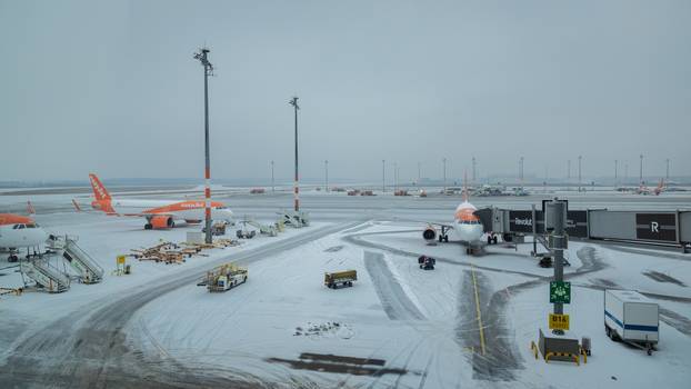 Berlinska zračna luka priopćila je u četvrtak ujutro da su sva polijetanja trenutačno otkazana zbog vremenskih uvjeta budući da je regiju glavnog grada Njemačke pogodio svježi snijeg i ledena kiša