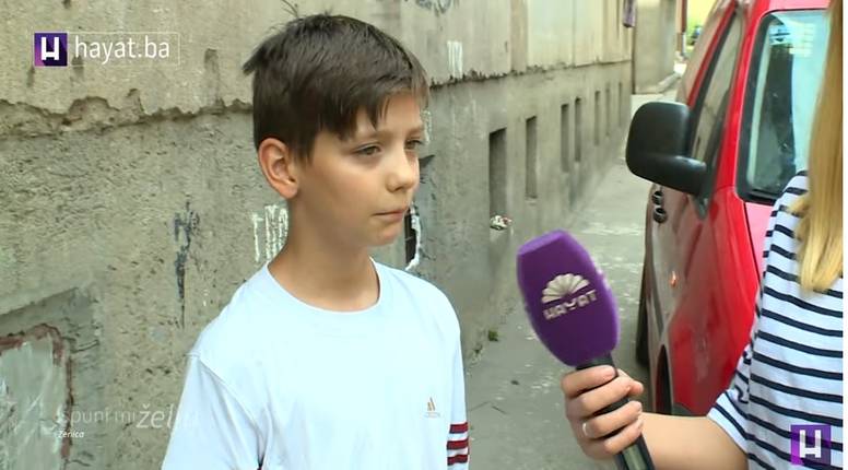 Držim se koliko mogu. Što ću vam reći, kako sam. Moja mama je bolesna, ima puno bolesti. Nije dobro. Najčešće leži, pije lijekove, puna vrećica joj je lijekova. Vjerujte mi, ne možemo kraj s krajem sastavit. Dobri ljudi, susjedi, nam pomognu. Tako preživljavamo. Primanja nemamo, brat povremeno nešto zaradi, kopa, ja pomažem tako da pomažem drugim ljudima pa mi nešto daju. U školi je dobro, petice, bila je sad jedna trojka, ali će se ispraviti, rekao je u suzama dječak Alen iz Zenice u emisiji na BiH televiziji Hayat. Dodao je i kako "nije jeo prekjučer, jučer i danas". Otac mu je umro prije 40 dana, a majka je teško bolesna.