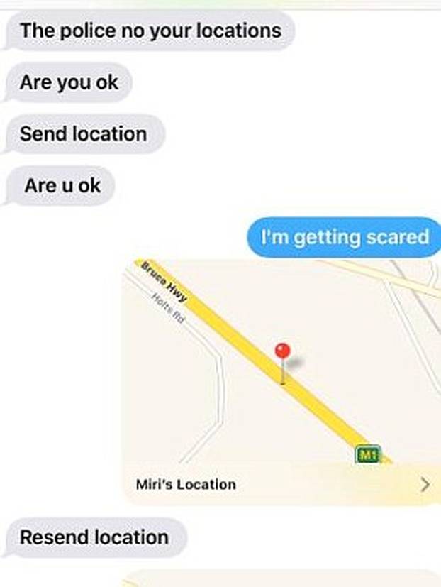 Uspjela ga je nagovoriti da stanu kupiti piće na benzinskoj gdje je prodavačici rekla da joj muškarac ne da da ode i da zove policiju, ali nastavili su put. Srećom, Mary Kate je sa sobom imala mobitel i uspjela je potajce ocu, koji je bio u Velikoj Britaniji, poslati poruke. Prvo ga je pitala je li budan i rekla mu da nazove australsku policiji. Dodala je da ju je oteo muškarac, ali misli da nije opasan. Noćna mora svakog roditelja potrajala je dok policija nije sustigla auto u kojem su bili. Heys je cijelo vrijeme ocu slala poruke s kartom lokacije.