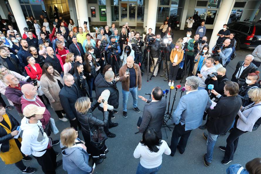 Pred KBC Zagreb od jutra prosvjed zbog uvođenja Covid potvrda u zdravstvo. Među prosvjednicima je bilo i djelatnika bolnice. Došao je i svećenik. Neki prosvjednici su agresivni i lupetaju o Hitleru