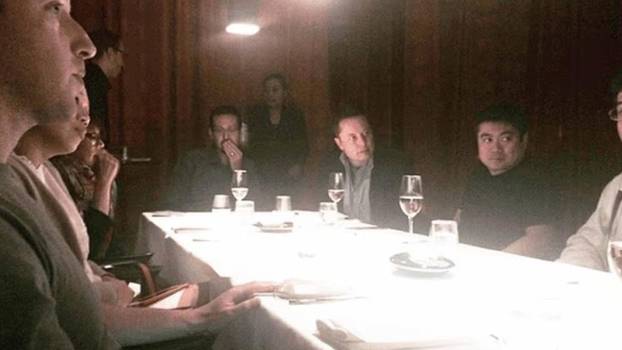 Epstein je tu fotografiju poslao samome sebi u ponedjeljak, 3. kolovoza 2015. godine, samo dan nakon što se hvalio da je sudjelovao u otmjenoj večeri s tehnološkim gigantima. Večeru je opisao 'divljom'. Večera je održana 2. kolovoza 2015., prema e-porukama iz Epsteinove dokumentacije. Te večeri Epstein je pisao autoru i liječniku Peteru Attiji, upitavši ga: "Gdje si?", prije nego što je dodao: "Možda ću u ponedjeljak biti u LA-u, Burbank, da pogledam interijer drugog BBJ-a (Boeing Business Jet, op. a.), večeras večera s Muskom, (PayPalovim šefom Peterom) Thielom, Zuckerbergom." Attia je an to entuzijastično odgovorio: "Zvuči kao sjajna večera."