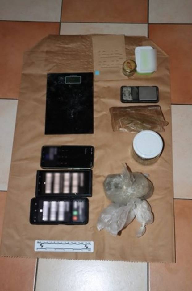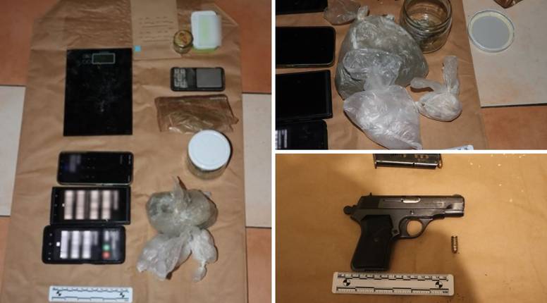 Također pronađen je novac za koji se sumnja da je pribavljen preprodajom droge, pištolj kalibra 7,65 mm i osam komada streljiva za navedeni pištolj te 52 komada streljiva za automatsko oružje, navodi se u priopćenju.