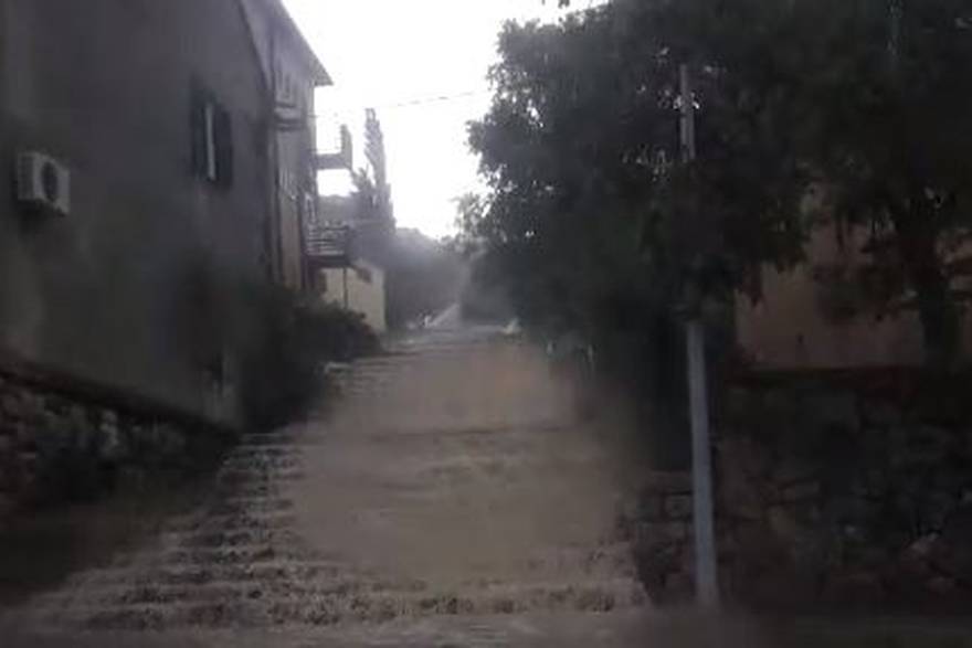 Drniš je pod vodom. Kako javlja Crometeo, u nekoliko sati palo 185 litara kiše po metru kvadratnom. Voda se slijeva niz grad, ulice su pod vodom.