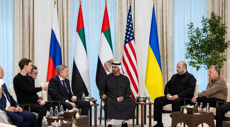 Reportedly, the video shows the first footage of US, Ukrainian, and Russian delegation heads meeting UAE President Sheikh Mohammed bin Zayed Al Nahyan in Abu Dhabi today. pic.twitter.com/cJkUOcfuh5