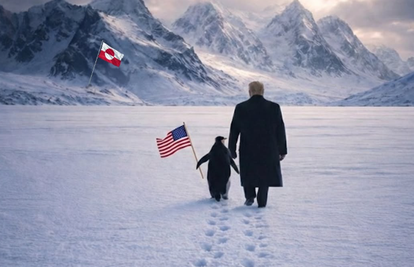 Bijela kuća je u subotu na službenim profilima na društvenim mrežama objavila AI generiranu sliku koja prikazuje predsjednika Donalda Trumpa kako hoda zaleđenim krajolikom Grenlanda, ruku pod ruku, odnosno krilo pod ruku, s pingvinom koji nosi američku zastavu. Nadrealni prizor popraćen je jednako kriptičnom porukom: "Prigrlite pingvina". Objava je, očekivano, izazvala lavinu reakcija i sprdnje, no iza bizarne fasade krije se nastavak ozbiljnog geopolitičkog pritiska na Dansku.