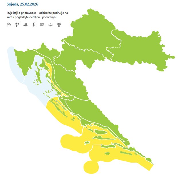 Podjednaka temperatura zraka bit će i na krajnjem jugu Hrvatske, gdje će biti obilje sunčanog vremena. Puhat će mjestimice umjeren sjeverozapadni vjetar, uz obalu ujutro slaba do umjerena bura."