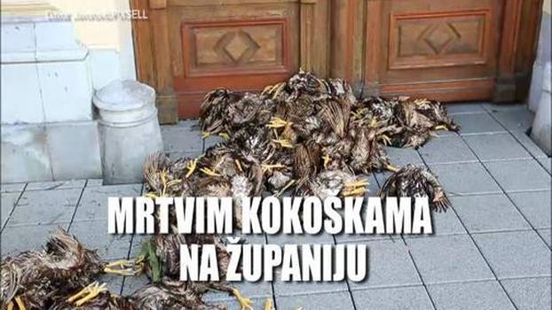 VIDEO: Umirovljeni časnik Hrvatske vojske Nikola Jaman (65) je pred sjedištem Osječko-baranjske županije istresao 50-ak crvenih nesilica koje su mu uginule u poplavi