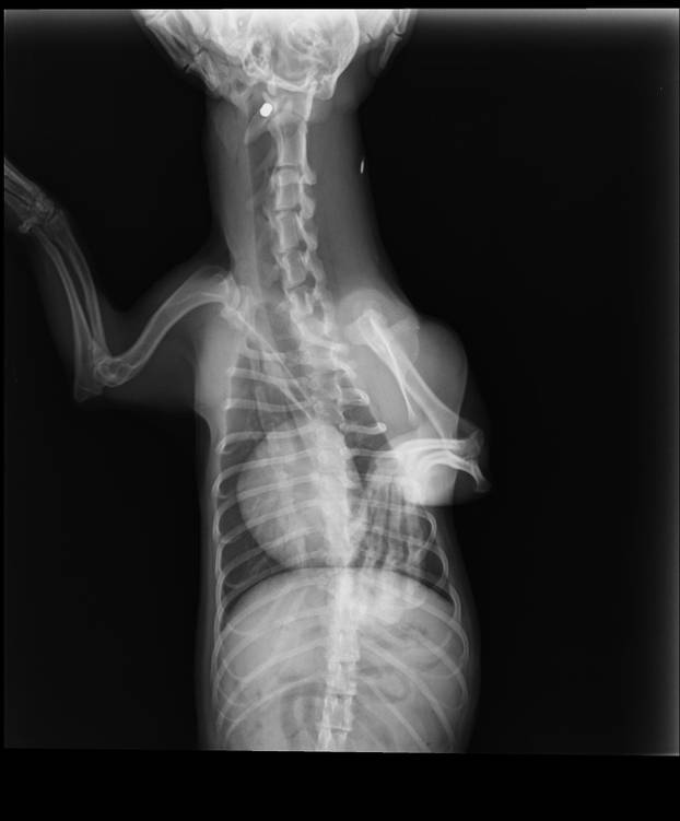 Metak je visoko gore i duboko kod kralješka. Zbog izazivanja većih lezija odustalo se od vađenja metka - stoji u nalazu kujice Lene