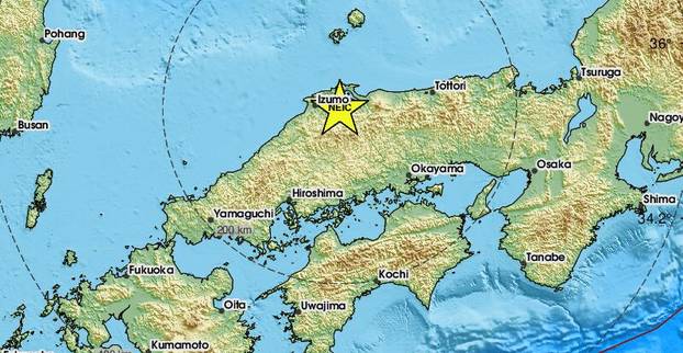 Epicentar prvog potresa bio je u istočnoj prefekturi Shimane, priopćila je agencija, dodajući da nema opasnosti od tsunamija