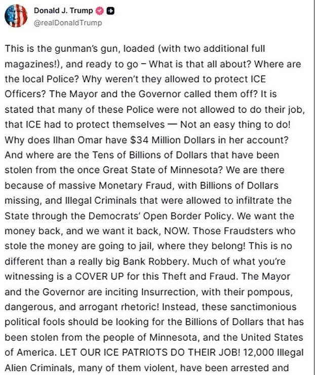 Ovu je priču dodatno zaoštrio sam predsjednik Trump, koji je na društvenim mrežama podijelio fotografiju pištolja, navodno Prettijevog, uz komentar: "Pištolj napadača, napunjen (s dva dodatna puna spremnika!), spreman za akciju."