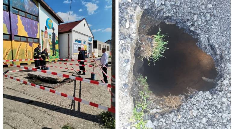 U Lovasu se ispred murala kod trgovine otvorila velika rupa u betonu, širine otprilike 2 i pol metra i dubine veće od 10 metara, izvijestili su iz Općine Lovas na svojim službenim Facebook stranicama.