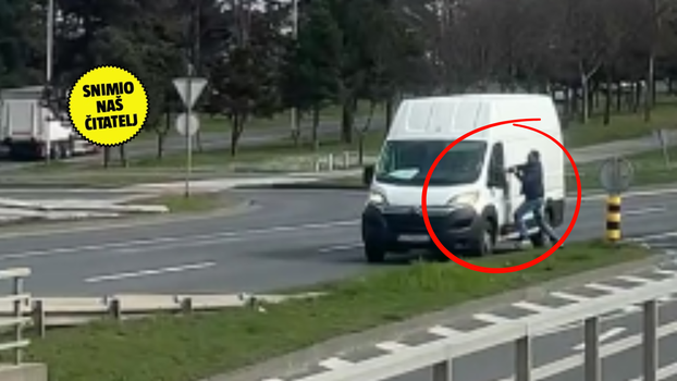 Frka na Slavonskoj aveniji u Zagrebu u četvrtak popodne. Kako nam je javio čitatelj, čini se da su popustili živci u prometu. Na snimci se vidi kako bijeli kombi stoji na cesti. Uz njega stoji muškarac. Odjedanput vozač kombija kroz otvoreni prozor udara muškarca. Ovaj mu pokušava vratiti...