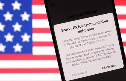 "Zakon koji je zabranio TikTok stupio je na snagu u SAD-u. Nažalost, to znači da zasad ne možete koristiti TikTok. Imamo sreću da je predsjednik Trump rekao da će raditi s nama na rješenju o ponovnom vraćanju TikToka kad se vrati u ured. Ostanite u tijeku", porukom su obaviješteni korisnici TikToka, koji je kasno u subotu nestao iz Apple i Google trgovina.