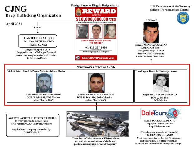 Mexican drug lord Nemesio Oseguera Cervantes, also known as El Mencho, appears in undated photographs on the U.S. Department of State website