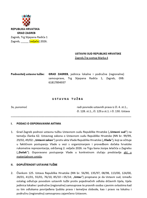 Tekst prijedloga ustavne tužbe već je objavljen na web stranici Gradske skupštine pod dnevnim redom iduće sjednice. 24. veljače znat će se hoće li Zagreb i službeno krenuti u pravnu bitku s Vladom.
