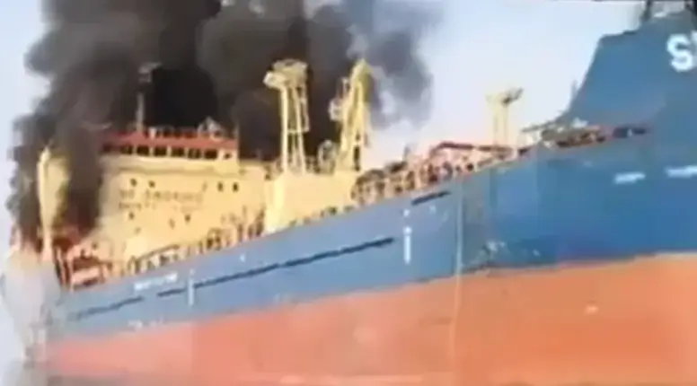 Iranian forces attacked a tanker from their own “shadow fleet” in the Strait of Hormuz, causing it to catch fire and begin sinking.