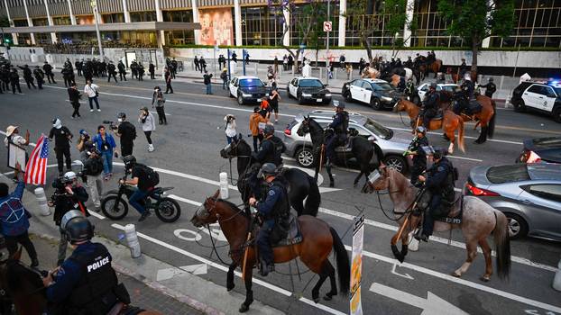 Ova anarhija neće se nastaviti. Nećemo dopustiti da se napadaju savezni agenti, nećemo dopustiti da strani neprijatelji napadnu i osvoje američki grad. Ono što vidite u Kaliforniji je napad na mir, javni red i nacionalni suverenitet, predvođen izgrednicima koji nose strane zastave i namjeravaju potaknuti stranu invaziju na našu zemlju, oštro je poručio američki predsjednik Donald Trump u obraćanju u vojnoj bazi Fort Bragg u Sjevernoj Karolini referirajući se na nerede u Los Angelesu koji su buknuli prošli petak potaknuti brojim imigracijskim racijama.