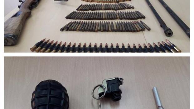 U pretrazi su pronašli i oduzeli automatsku pušku sa dva pripadajuća spremnika, ručnu bombu, pušku, 155 komada raznog streljiva te sedam komada raznih cijevi za puške.