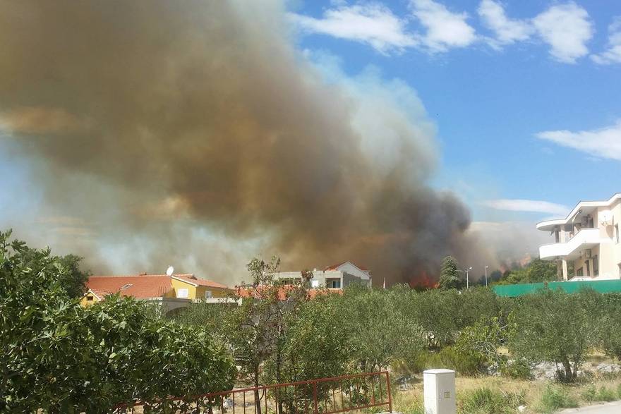Iz Centra 112 kažu da se vatra bliži kućama. Na terenu su sve raspoložive vatrogasne snage. Požar iz zraka sada gasi jedan kanader, a očekuje se da će doći još dva.