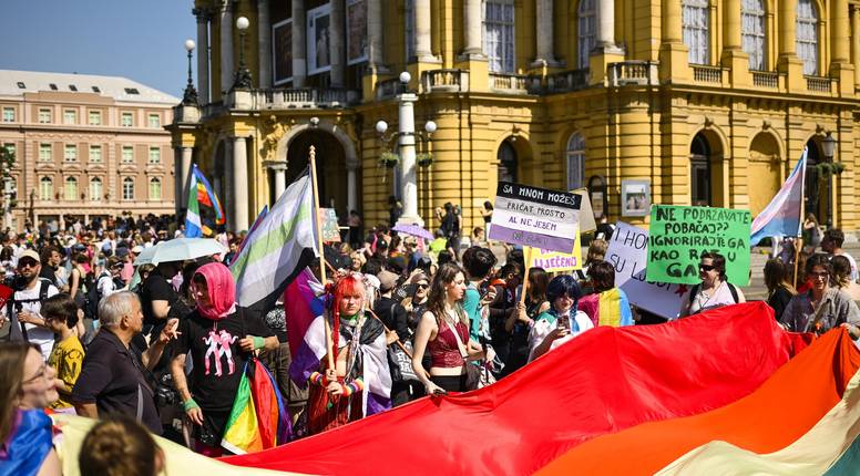 Na Trgu Republike Hrvatske, ispred Hrvatskog narodnog kazališta, danas u 15 sati počela je 24. Zagrebačka povorka ponosa u znak borbe za prava LGBTQ+ zajednice