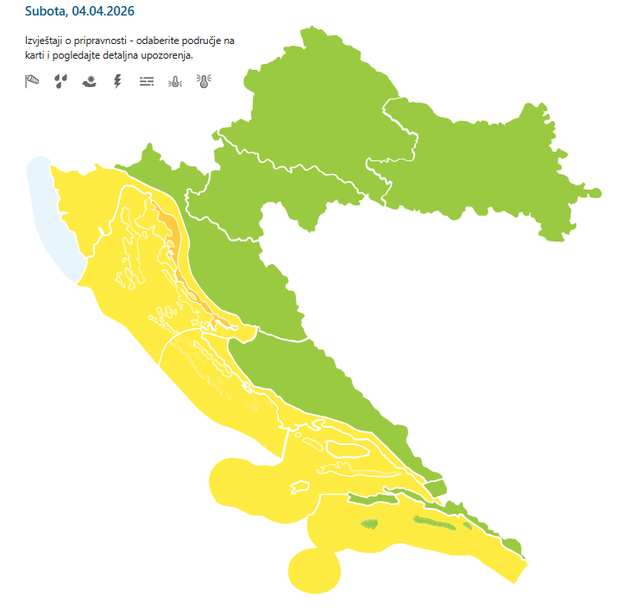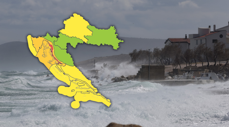 Za petak izdano je crveno upozorenje za Velebitski kanal, a narančasto za Riječku regiju te za Kvarner i Kvarnerić