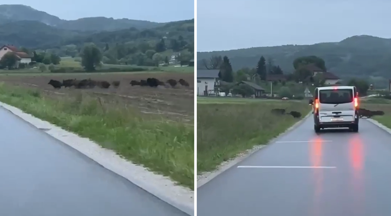 ZAGORJE Naša čitateljica snimila je grupu divljih svinja koje su velikom brzinom pretrčavale cestu. - Išla sam na posao prema Mariji Bistrici kad sam oko 5.30 sati naletjela na puno divljih svinja koje su preko polja prelazile cestu zbilja u velikoj brzini. Nešto što još nisam nikada do sad vidjela. Bilo je zbilja čudno vidjeti tako nešto, vozim se tu svaki dan, ali još to nisam doživjela - ispričala nam je.