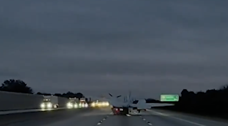 Američka Savezna uprava za zrakoplovstvo (FAA) potvrdila je da je višemotorni zrakoplov s fiksnim krilima pokušao izvesti hitno slijetanje odmah nakon prijavljene tehničke poteškoće. Udarac je oštetio stražnji dio automobila, a vozačica je zbog lakših ozljeda prevezena u lokalnu bolnicu.