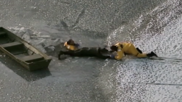 SAD - Policija u Wellesleyju objavila je dron snimku spašavanja psa i njegovog vlasnika koji su upali kroz led na jezeru Waban. Spasioci iz vatrogasne službe izvukli su prvo vlasnika, a potom i psa. Naime, vlasnik je pokušao spasiti psa te je i on upao u hladno jezero. Na svu sreću, svi su dobro