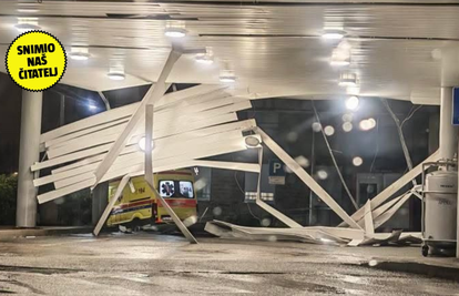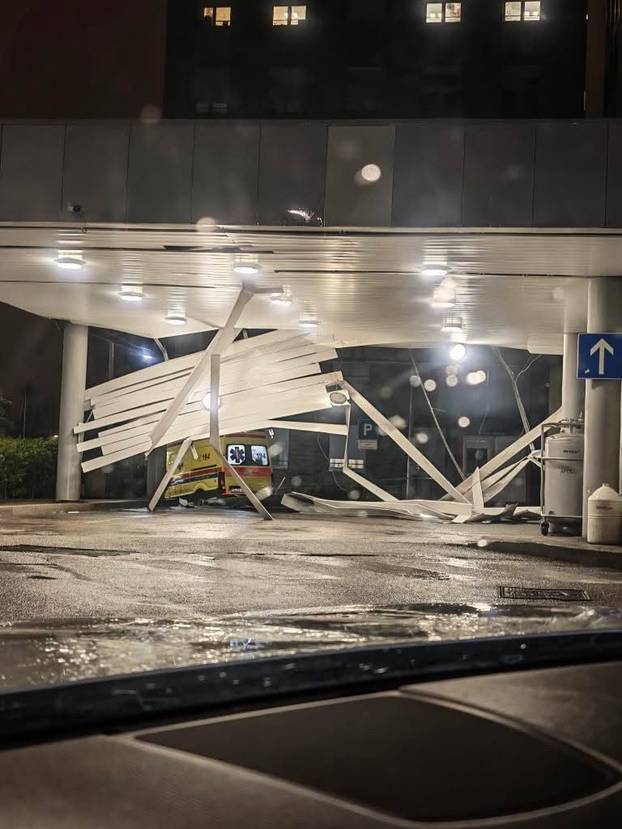 Zbog olujnog nevremena koje je zahvatilo Zagreb, oštećen je dio nadstrešnice iznad Objedinjenog hitnog bolničkog prijama KBC-a Zagreb