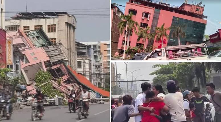 MANDALAY: Urušene i nakrivljene zgrade i kuće, ljudi u panici... Užasne scene stižu iz Mjanmara kojeg su u petak pogodila dva jaka potresa, magnitude 7,7 i 6,4 po Richteru. Mandalay se nalazi nedaleko od epicentra potresa, strahuje se da će broj žrtava biti velik... Vojna hunta koja vlada državom od 2021. godine potvrdila je da imaju velik broj žrtava, ali nisu iznosili detalje.