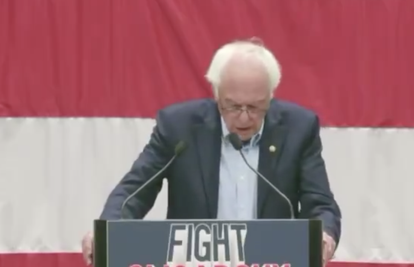 "Imamo predsjednika koji gotovo svakodnevno djeluje protiv vrijednosti ove zemlje i protiv interesa radničkih obitelji", rekao je Sanders, dok su okupljeni građani uzvratili glasnim skandiranjem "Nema više rata!"