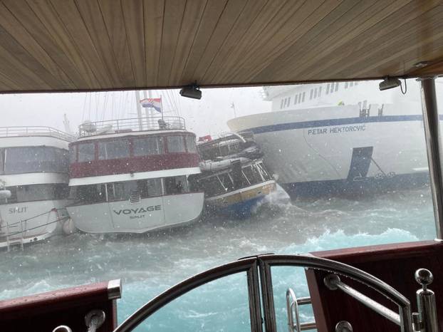 U splitskoj luci nastala je prava drama, a sve se odvilo u nekoliko minuta. Jadrolinijin trajekt Petar Hektorović zabio se u obližnje brodove. Od oluje su popucali konopi.