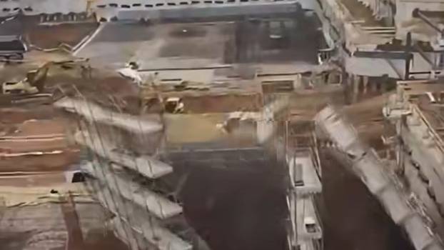 Na snimci se vidi kako su radnici bili u blizini skele, srećom, sve je prošlo bez tragedije...