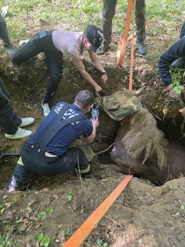 Kad smo dobili dojavu da je kobila pala u jamu, mislili smo da nas netko zeza. Vlasnik i ona su jahali kroz šumu kad je ispod nje propala zemlja, a oni u jamu. Vlasnik je ispuzao, ali je trebalo konja težeg od pola tone izvući van. Srećom, bila je jako dobra i smirena, prisutnost vlasnika je pomogla - govori nam Stjepan Mihok (30) zamjenik zapovjednika DVD-a Marija Magdalena. Oni su u subotu u 14.40 sati zaprimili dojavu i na teren izašli sa sedam vatrogasaca.