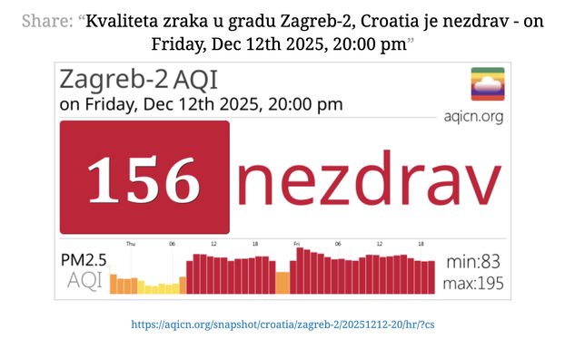 DHMZ ističe da se radi o standardnim preporukama koje automatski prate razinu onečišćenja – a trenutno stanje pokazuje da je Zagreb već danima u zoni koja zahtijeva pojačan oprez.