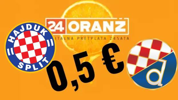 Postani pretplatnik Oranža za samo 0,5 € za prvi mjesec s popustom koji traje samo danas do kraja derbija Hajduka i DInama! Čitaj sve članke na 24sata i iskoristi popuste i kupone u vrijednosti od 55 eura u našem mjesečnom paketu. Sve što trebaš napraviti je kliknuti OVDJE i otključati najbolji sadržaj i najpovoljnije pogodnosti po najnižoj cijeni ikad! Pretplati se već danas!