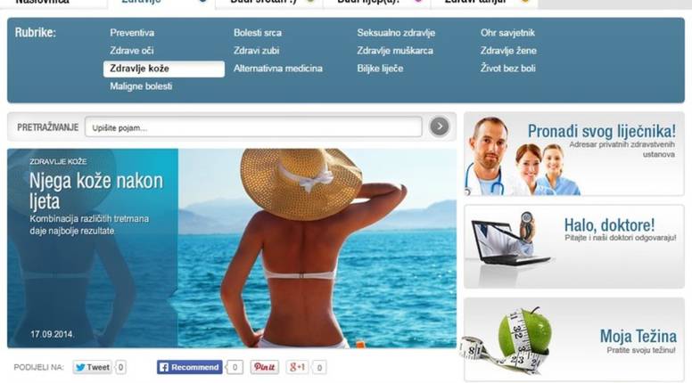 Tako, primjerice, kategorija Zdravlje otvara rubrike o preventivi, očima, koži, zdravim zubima, malignim bolestima, bolestima srca, alternativnoj medicini, seksualnom zdravlju, zdravlju muškaraca, ljekovitom bilju i drugim temama.Ozbiljni i relevantni tekstovi pomažu nam riješiti dileme koje se tiču partnerskih odnosa, seksa, odgoja djece, a upućuju i u nove metode liječenja, preventivne mjere te pravila zdrave prehrane i vježbanja.