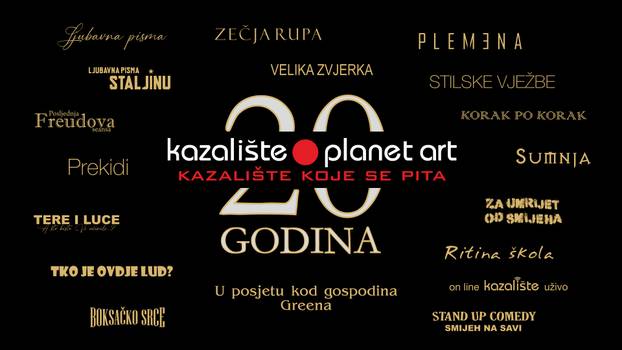 Kazalište Planet Art, čije su predstave obilježile zadnjih 20 godina, od 22. do 31. siječnja u Histrionskom domu obilježit će 20 godina postojanja izvedbama šest predstava od kojih se neke izvode i 20, 15 i 10 godina