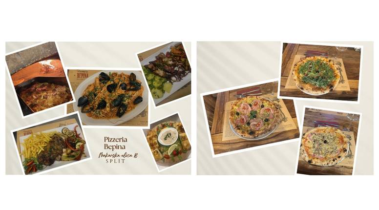 Ponuda u Bepini je bogata, ali jednostavna. Više od 20 vrsta pizza, četiri vrste štruca, jela po narudžbi i ono najvažnije, svakodnevne kuhane marende. Sve osim janjetine peče se na vatri, a upravo taj stil pripreme daje hrani onaj prepoznatljiv okus koji gosti traže ponovno.